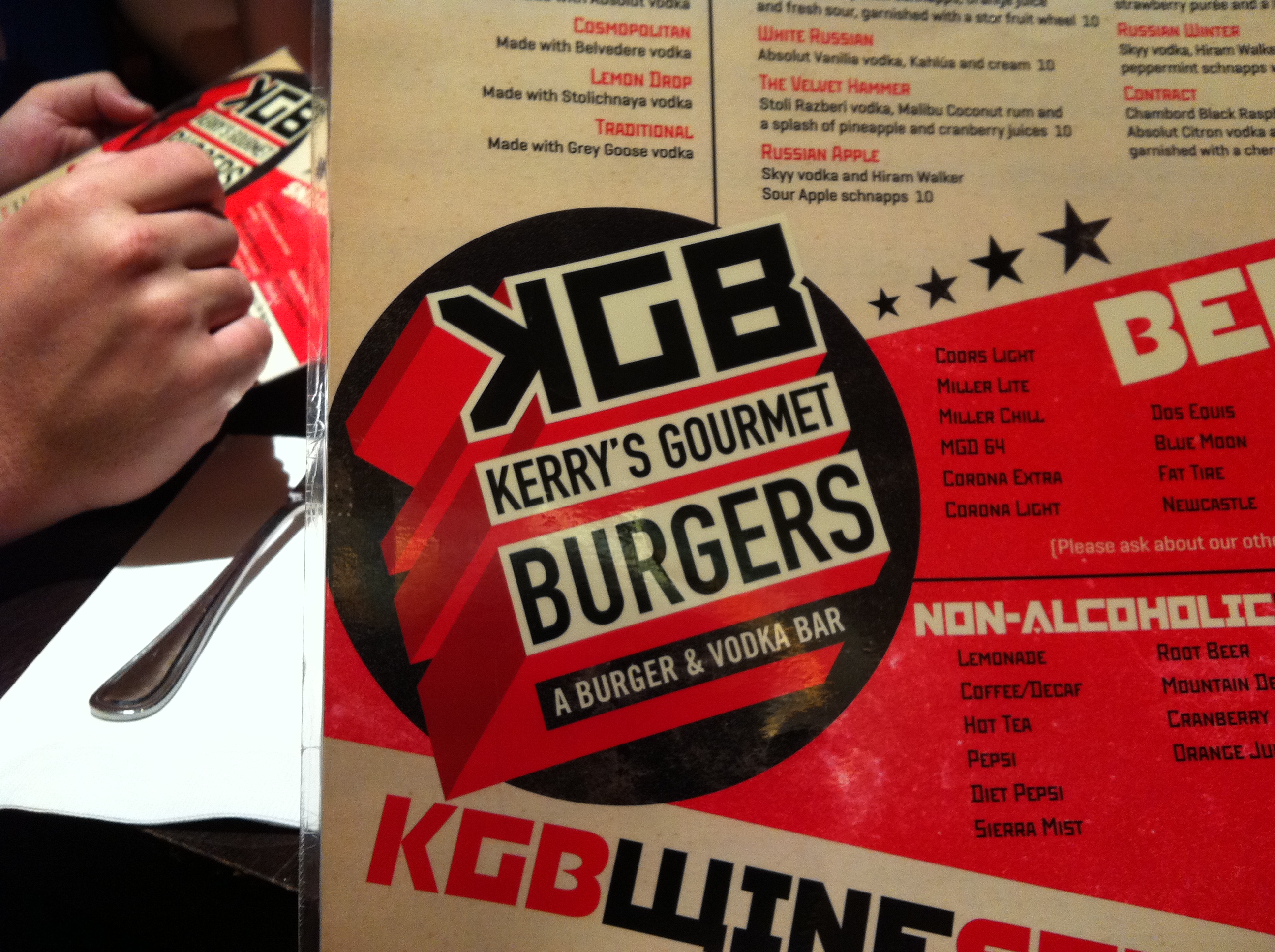 – Had dinner at the “KGB Burger and Vodka Bar.”
