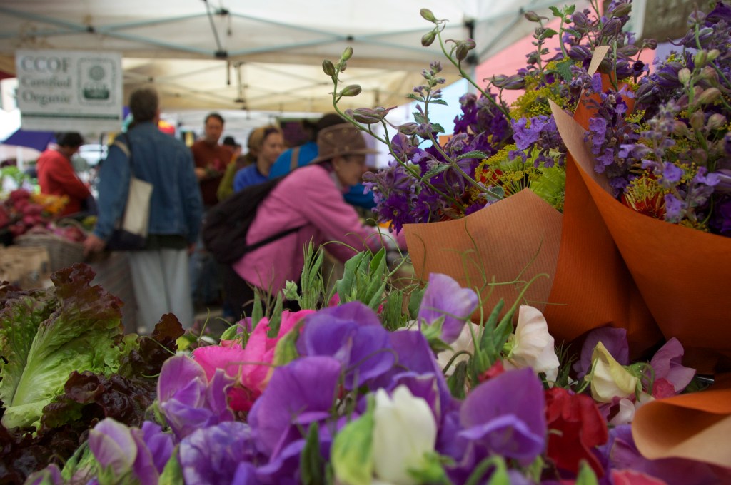 8:35 am.  I go across the street to Arizmendi Bakery to buy more coffee to help Teresa and Robert get through the morning rush.  By the time I get back the market is officially open for business and there’s already a long line at the 5th Crow stand.  Teresa spends the rest of the market lifting crates of produce and answering questions from the customers while Anne handles the money.