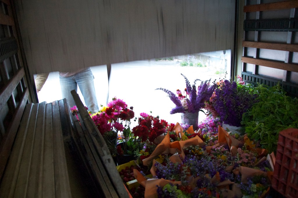 6:10: We’re the first ones to arrive at the site of the Inner Sunset Farmers’ Market in San Francisco.  I try not to feel too guilty for taking photos instead of helping Teresa unload the truck and set up her stand…
